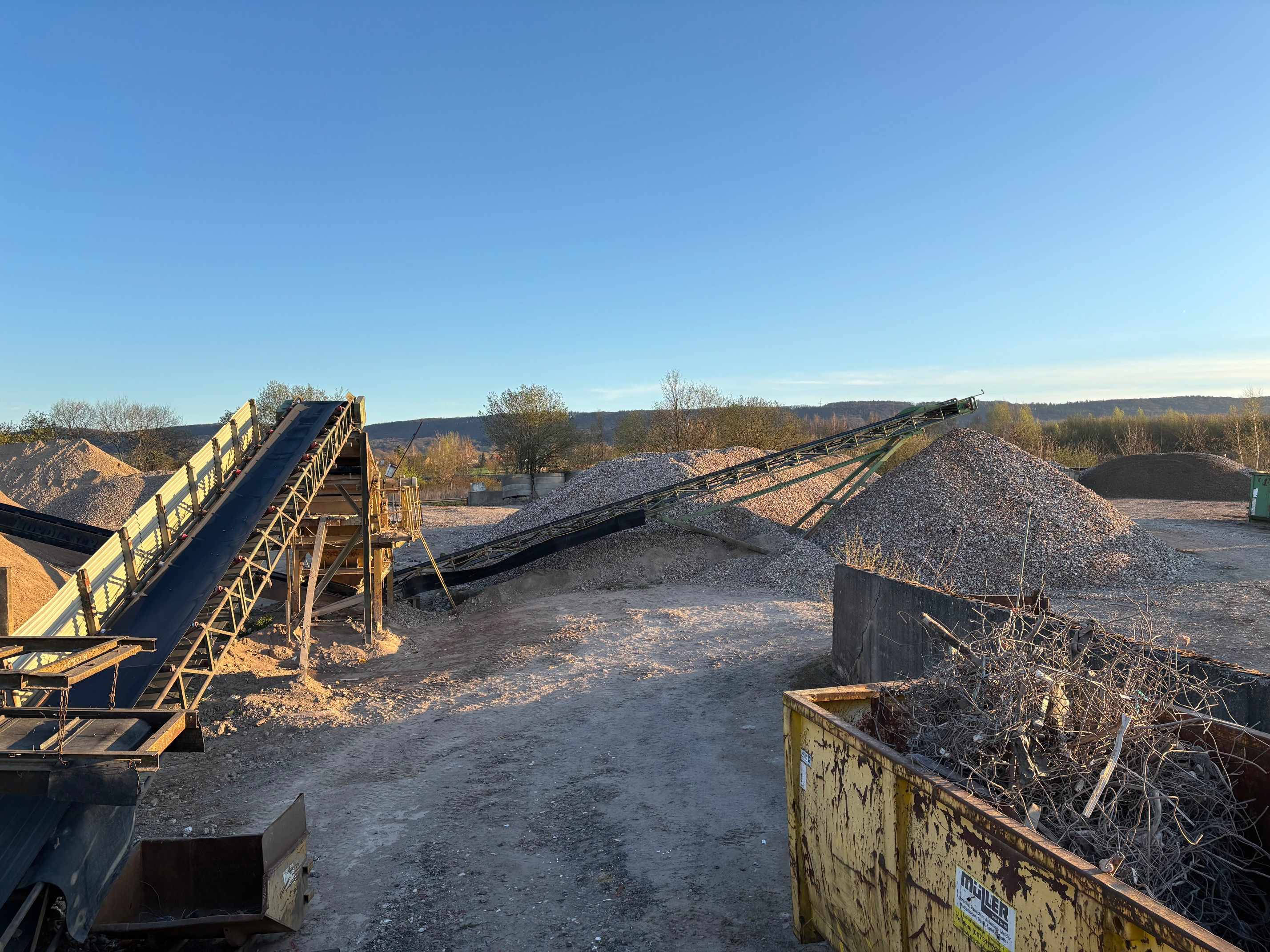 Auf einem z.Zt. 20.000 m² umfassenden Betriebsgelände wurde nach dem Bundes-Immissionsschutzgesetz (BImSch) die stationäre Baustoff-Recycling-Anlage genehmigt. Mit einer 32t- Prallmühle werden Baustoffabfälle als Sekundärrohstoffe aufgearbeitet.